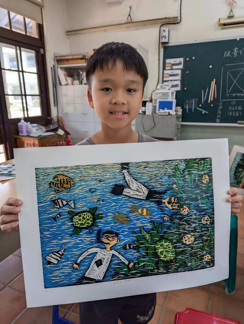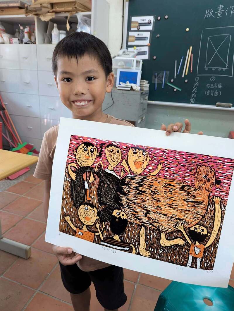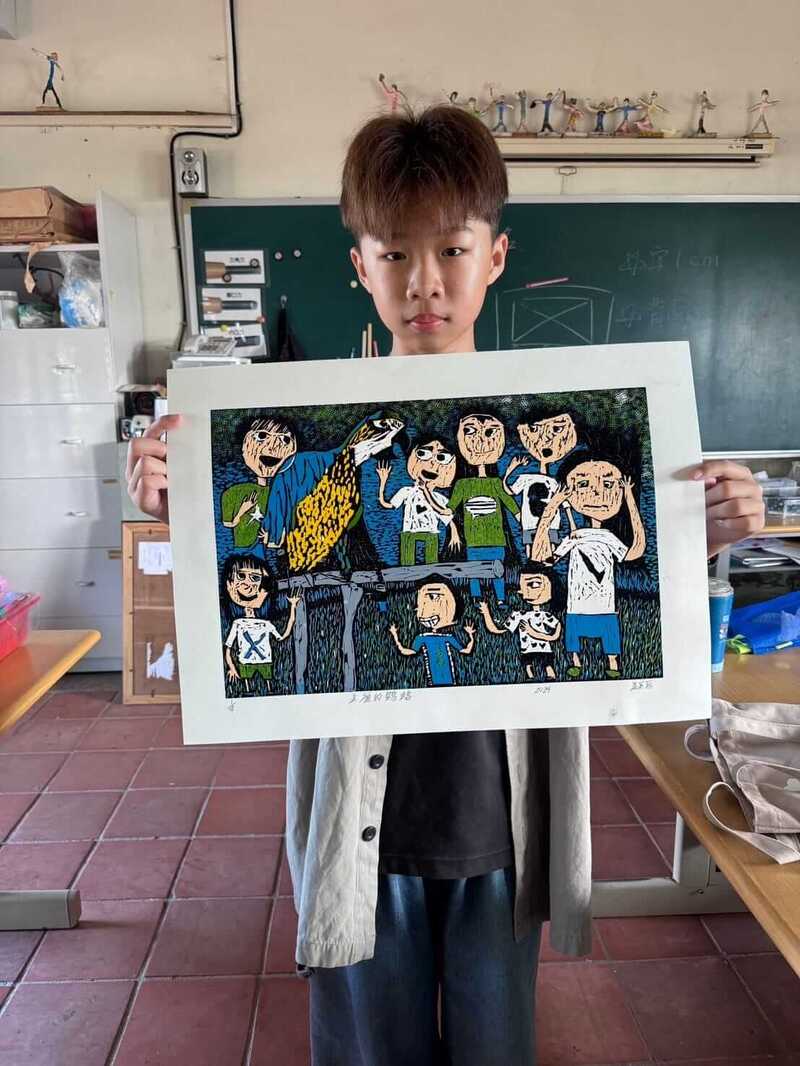 恭喜得獎小朋友!也謝謝指導老師灌注熱情與愛! 樹人國小駐校藝術家 吳鴻滄老師說:版畫教學從構圖、雕刻、印製可以培養孩子的耐性,創作過程需要較多的理性思考,對性情的陶冶會幫助很大! 基金會長期資助偏鄉孩童多元課輔,幫助孩子找到學習熱情,期望每一位小朋友都發揮天賦,自信地翻轉未來!