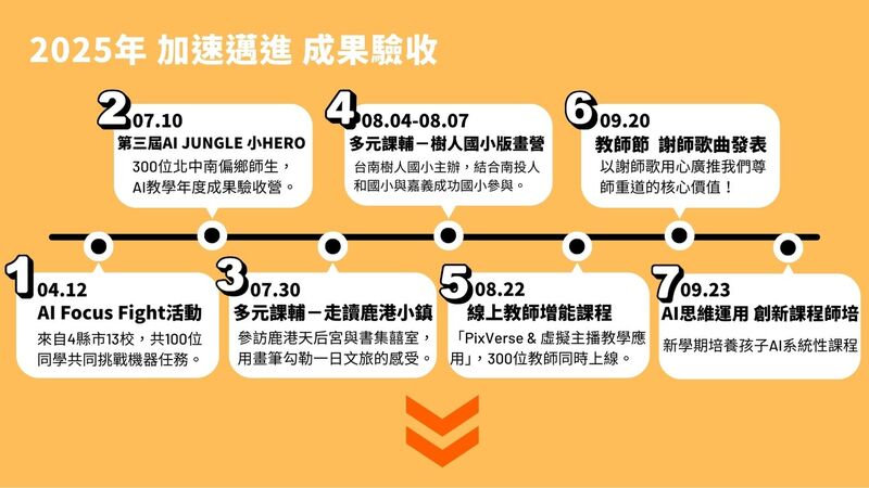 我們透過一場又一場的教學研習,老師們不斷提升AI教學能力,帶著孩子們一起真切體驗—「未來,就是現在!」